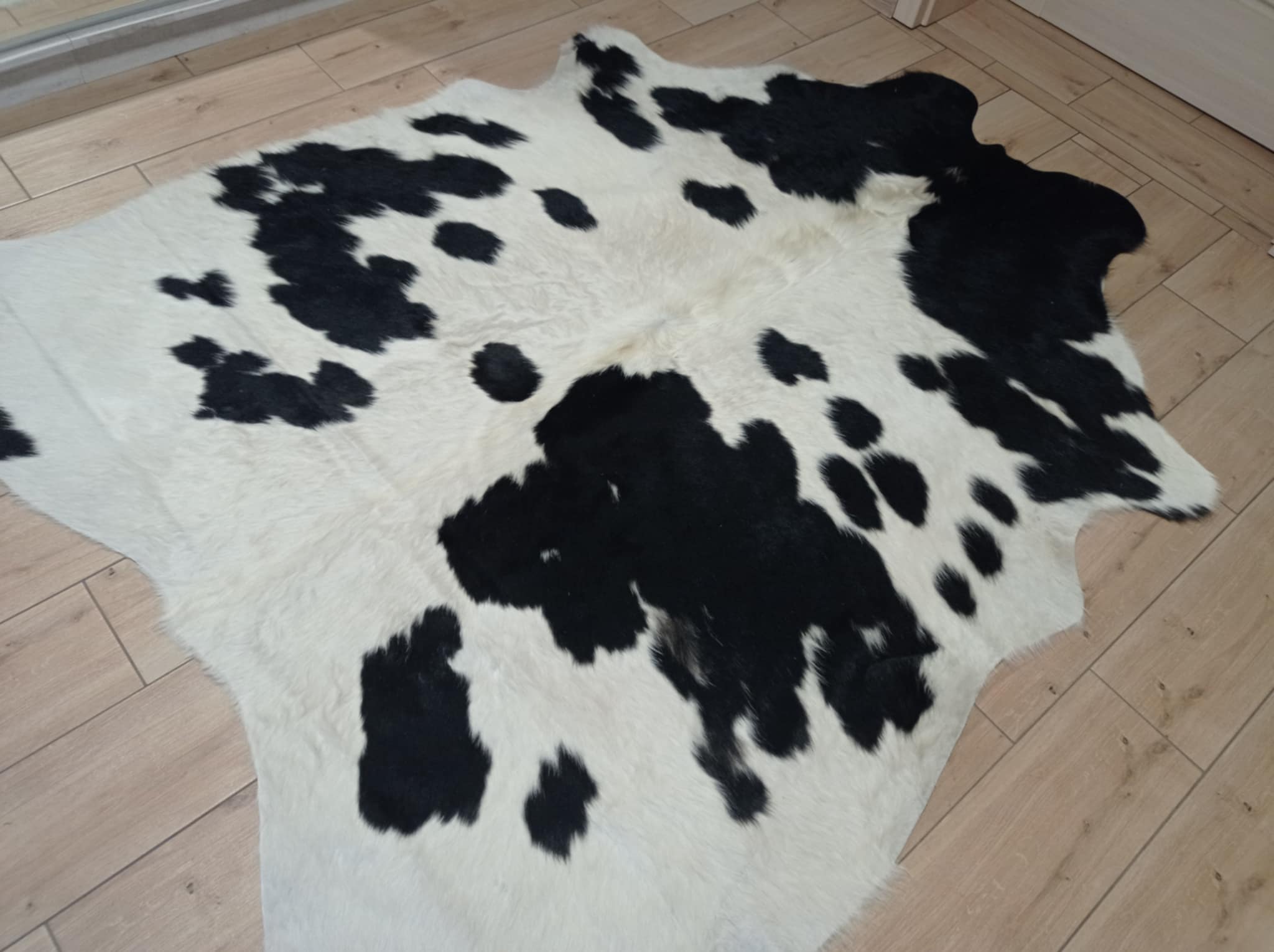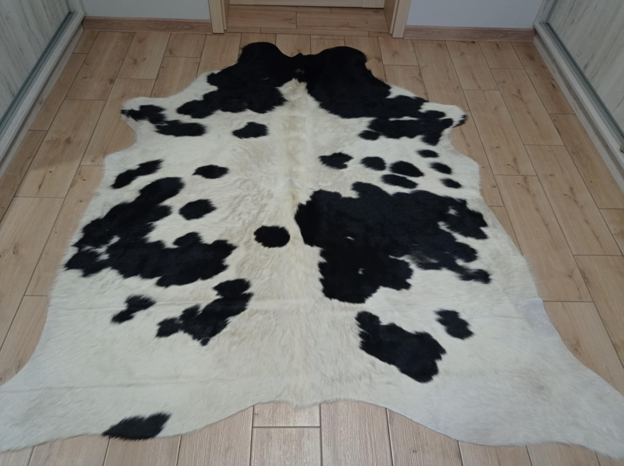 DYWAN SKÓRA BYDLĘCA łaciata czarno-kremowa skóra z krowy