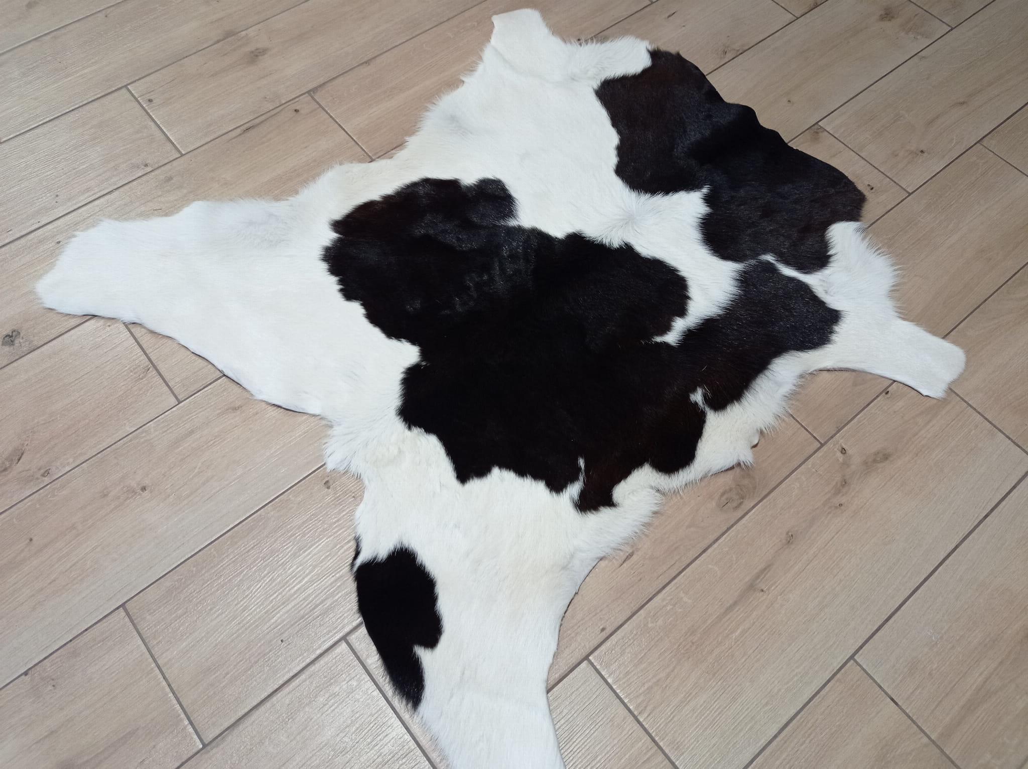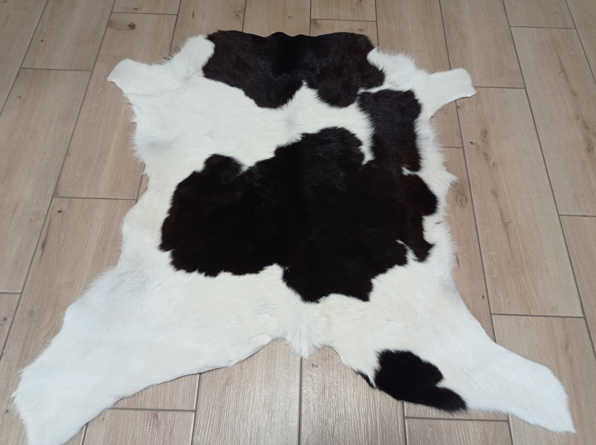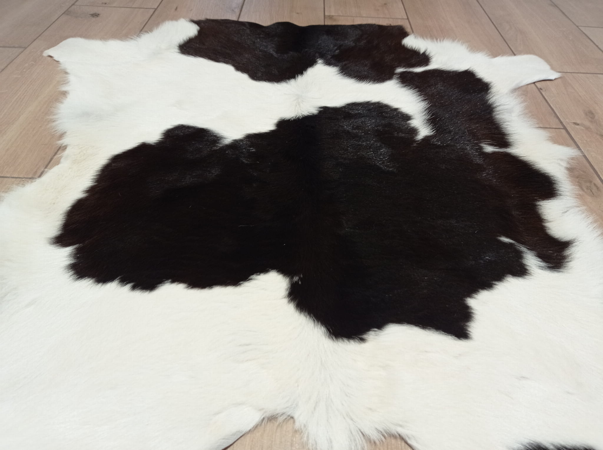 Dywan SKÓRA BYDLĘCA CIELAK POLSKI łaciaty ciemnobrązowo-czarno-biały skóra naturalna
