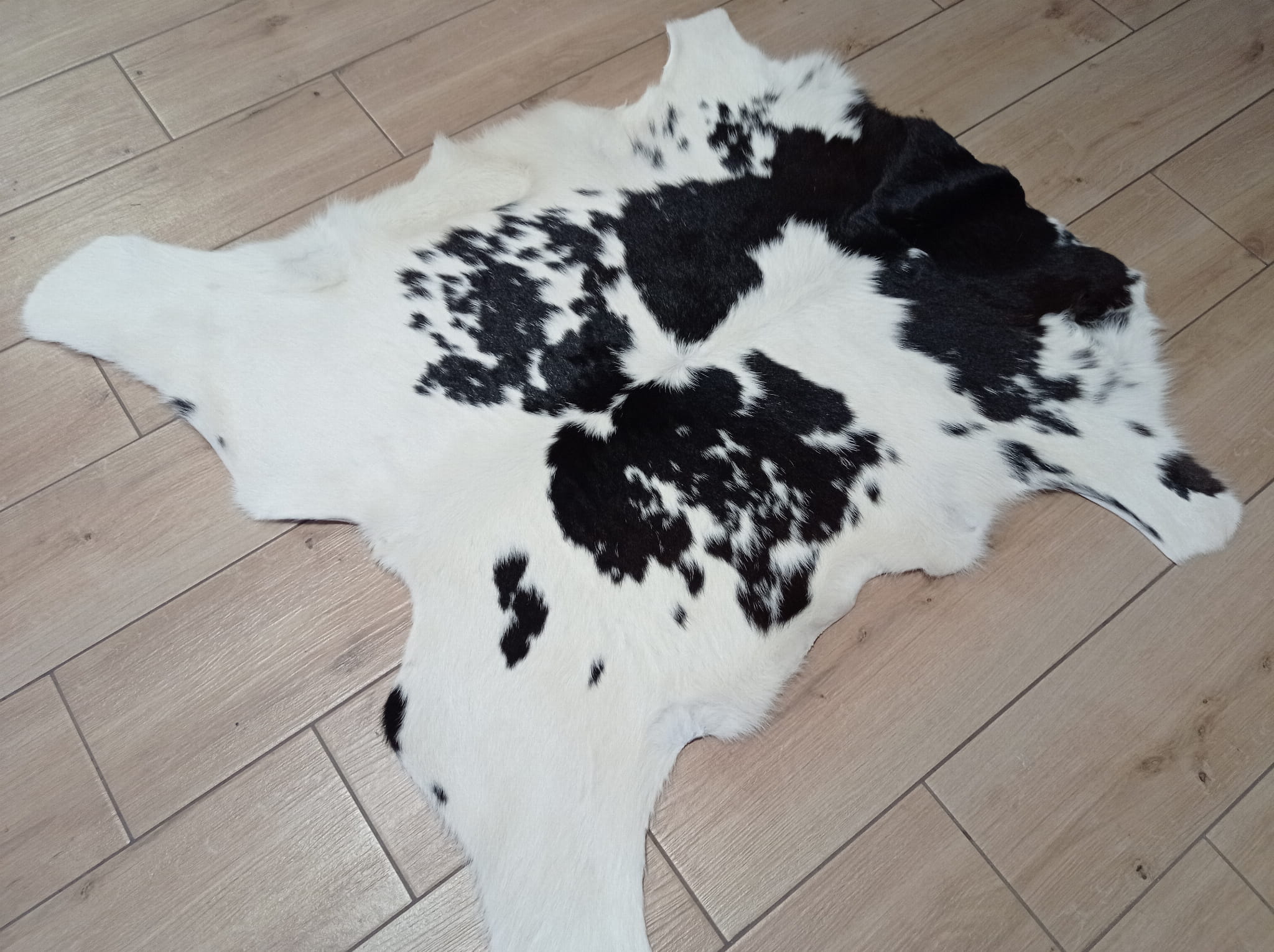 Dywan SKÓRA BYDLĘCA CIELAK POLSKI łaciaty czarno-biały skóra naturalna