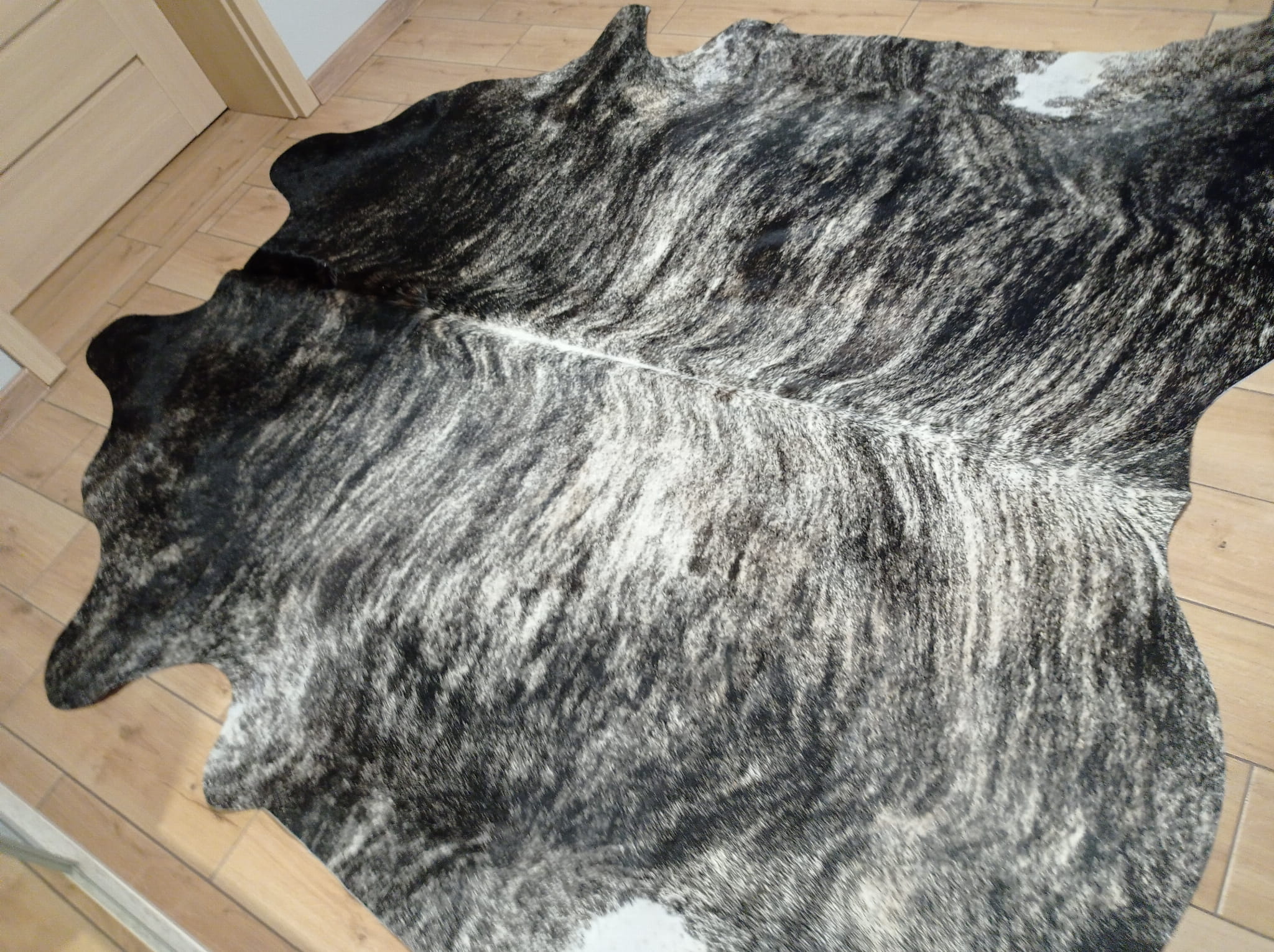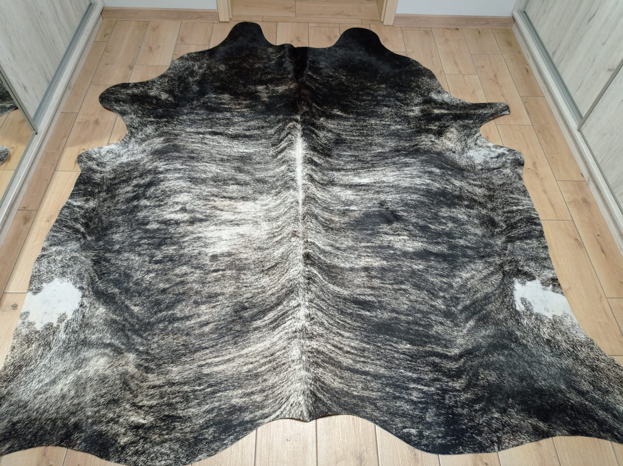 Ten spektakularny dywan ze skóry bydlęcej typu "GIGANT" o wymiarach 235x230 cm to rzadki okaz dla koneserów. Połączenie imponującego rozmiaru (format XXL) z modnym, czarno-beżowym ubarwieniem czyni go unikatem na skalę europejską.