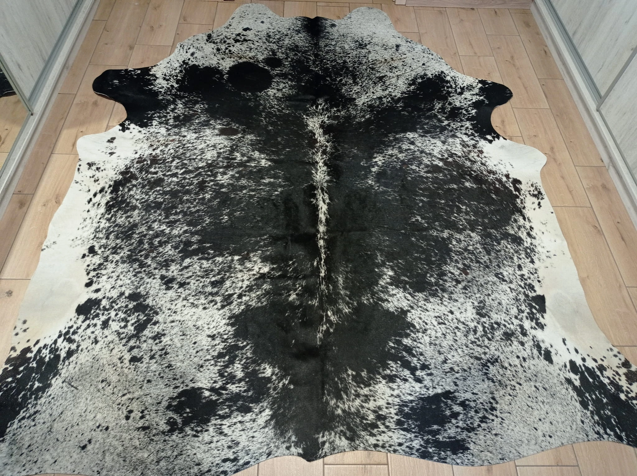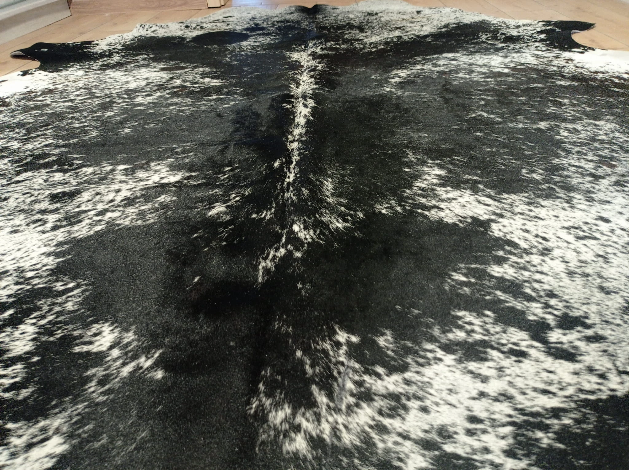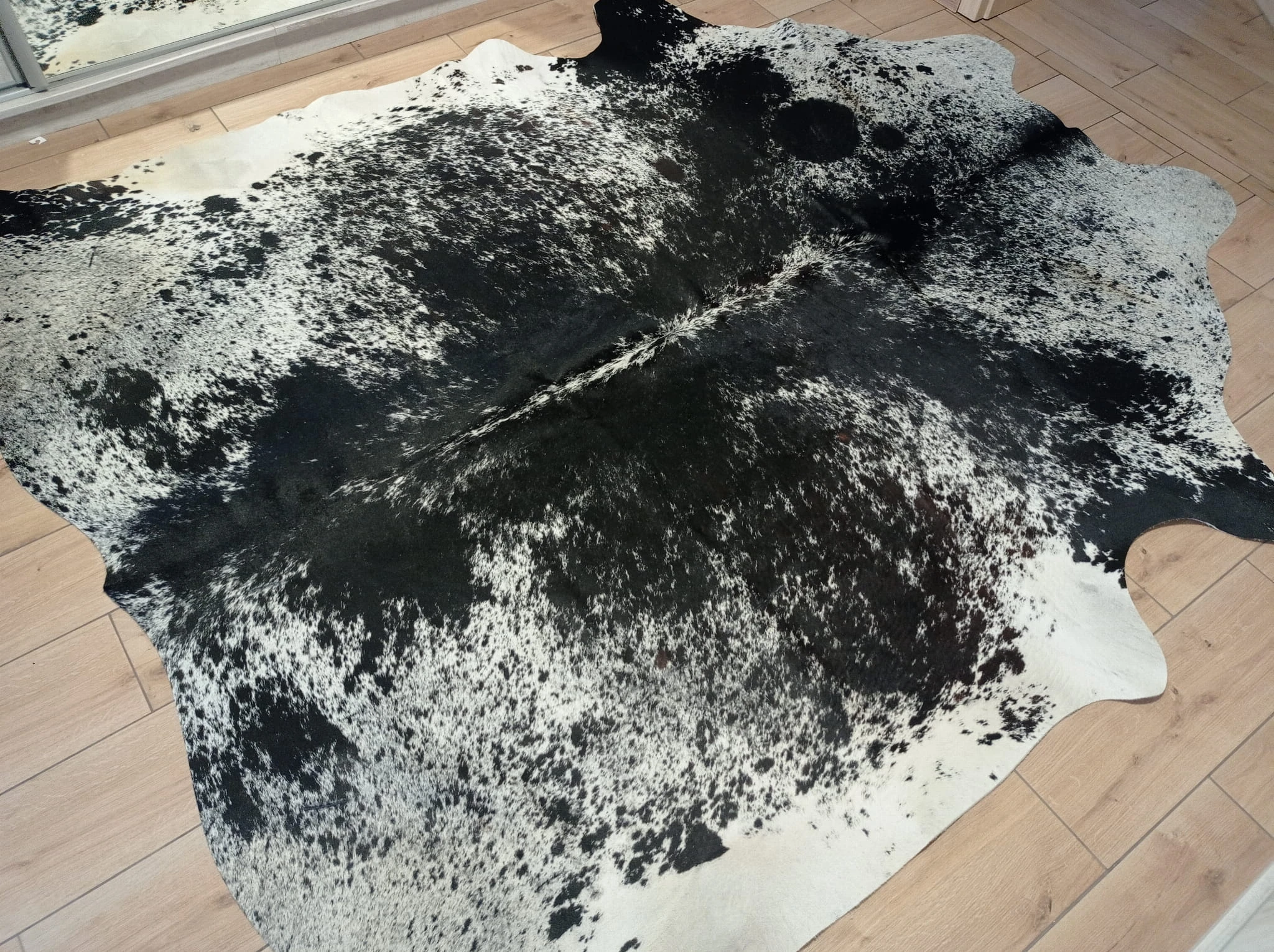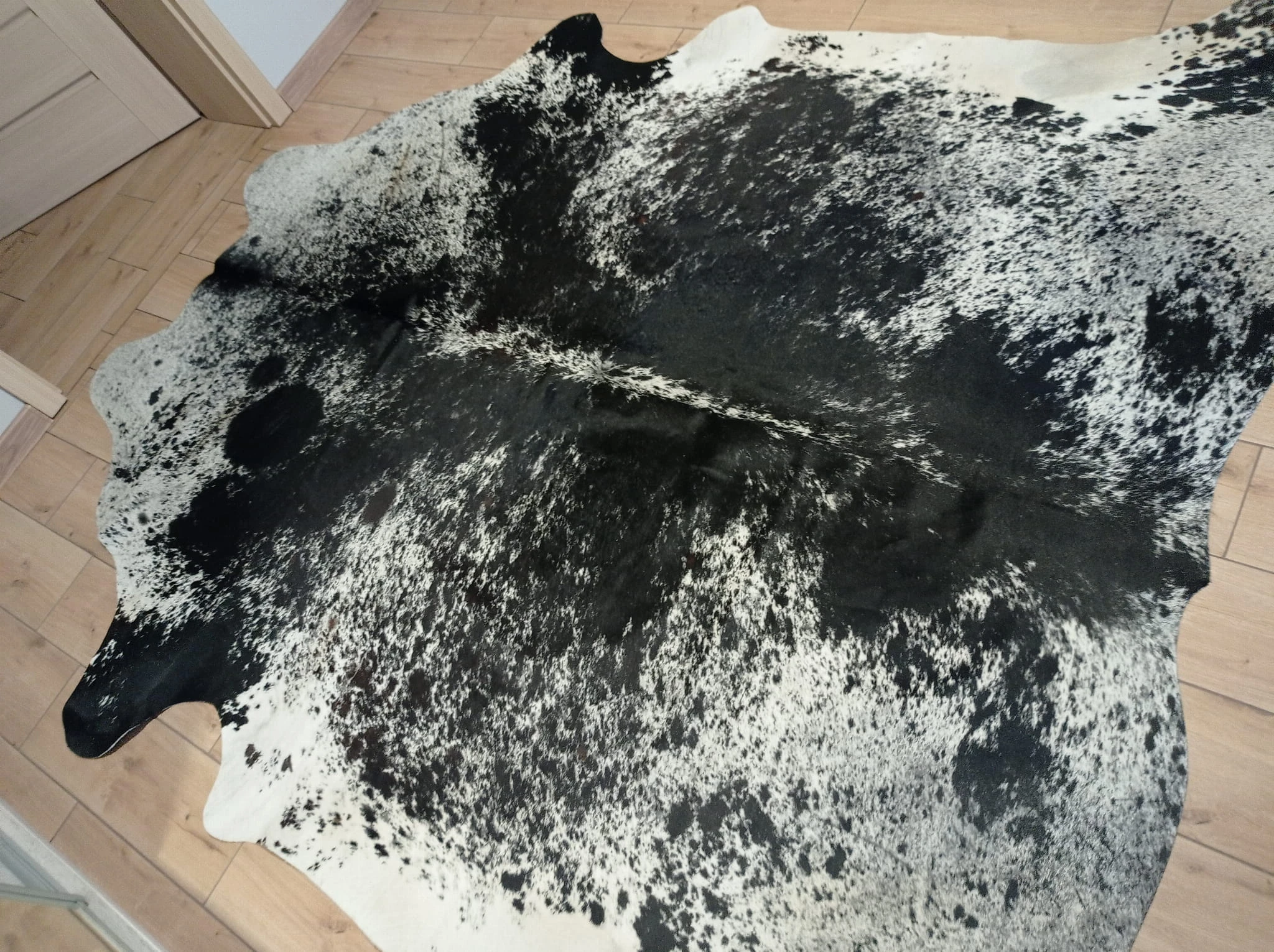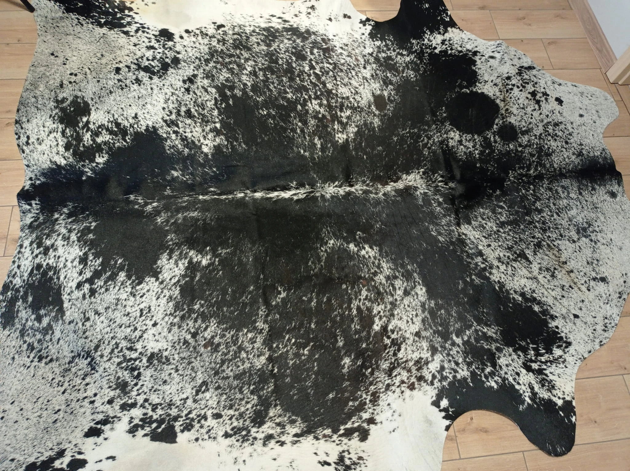 Naturalny Dywan ze Skóry Bydlęcej - Wzór ŁACIATY (Czarno-Biały) Unikat