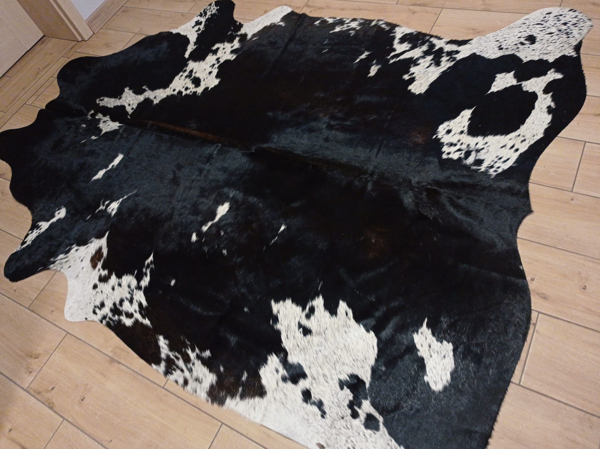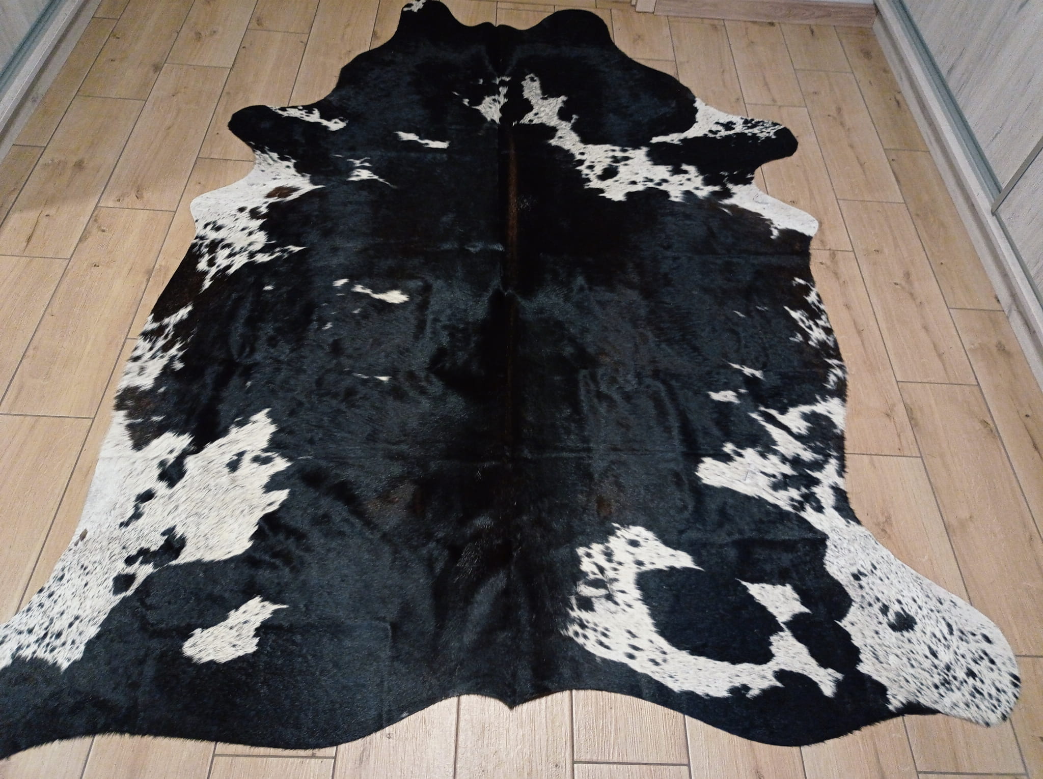 Naturalny Dywan ze Skóry Bydlęcej - Wzór Łaciaty (Czarno-Brązowo-Kremowy) Unikat)