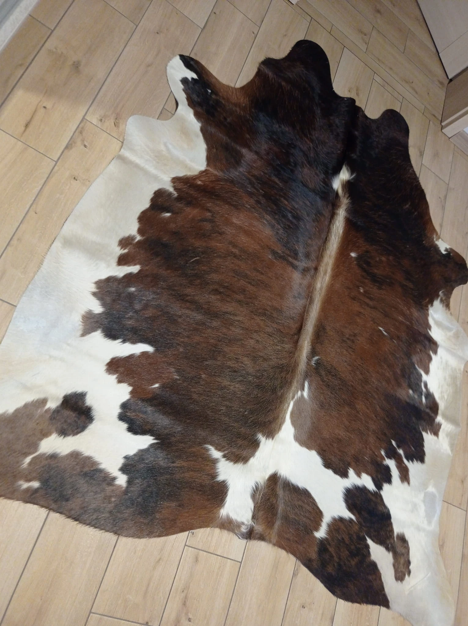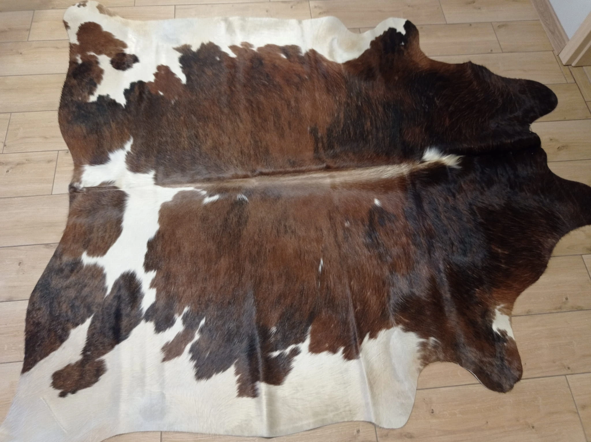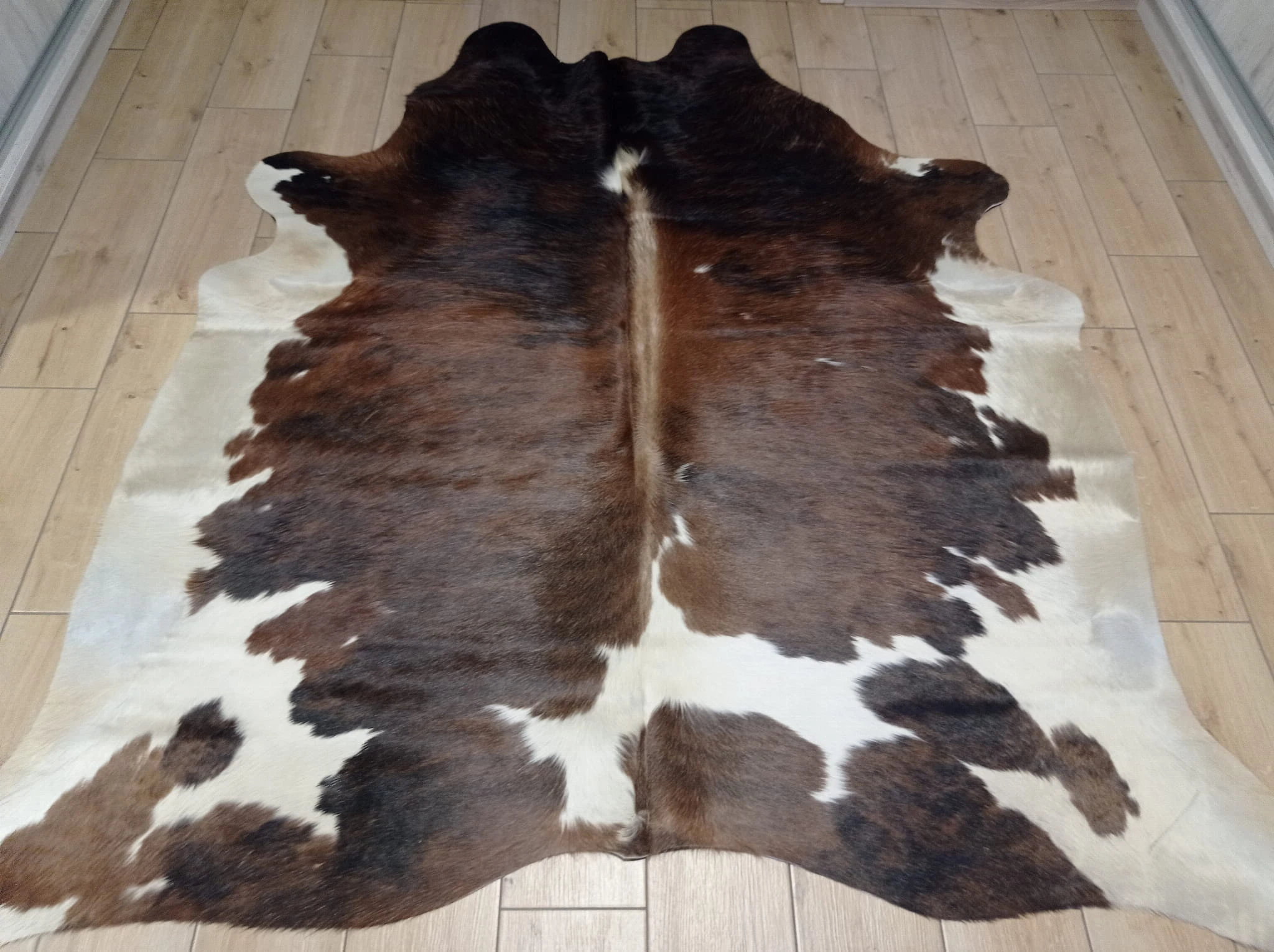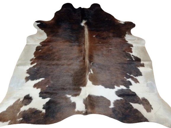 Naturalny Dywan ze Skóry Bydlęcej - Wzór TRICOLOR (Kremowo-Brązowo-Czarny) Unikat