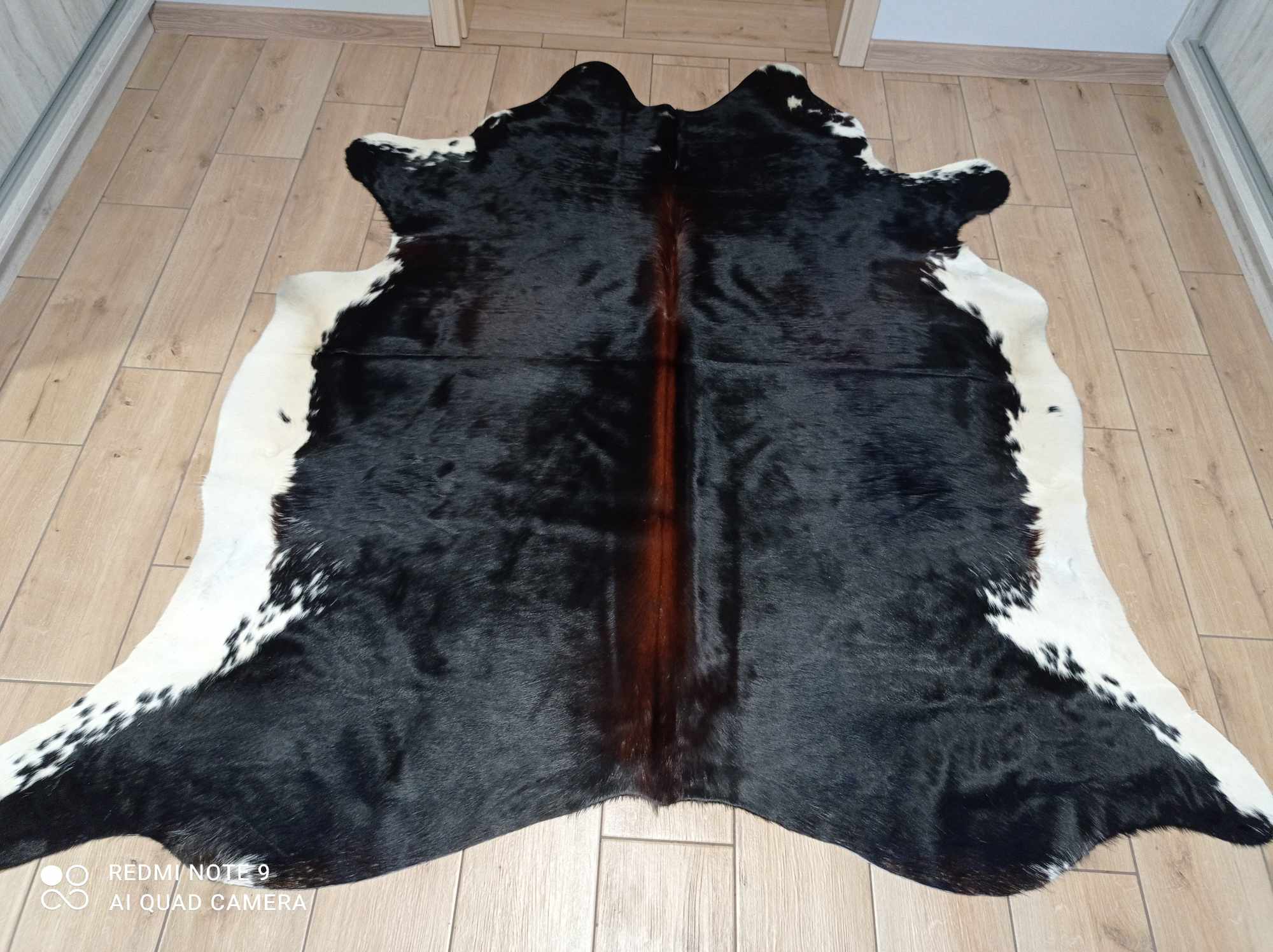 Piękna SKÓRA BYDLĘCA czarno-brązowo-kremowa skóra z krowy