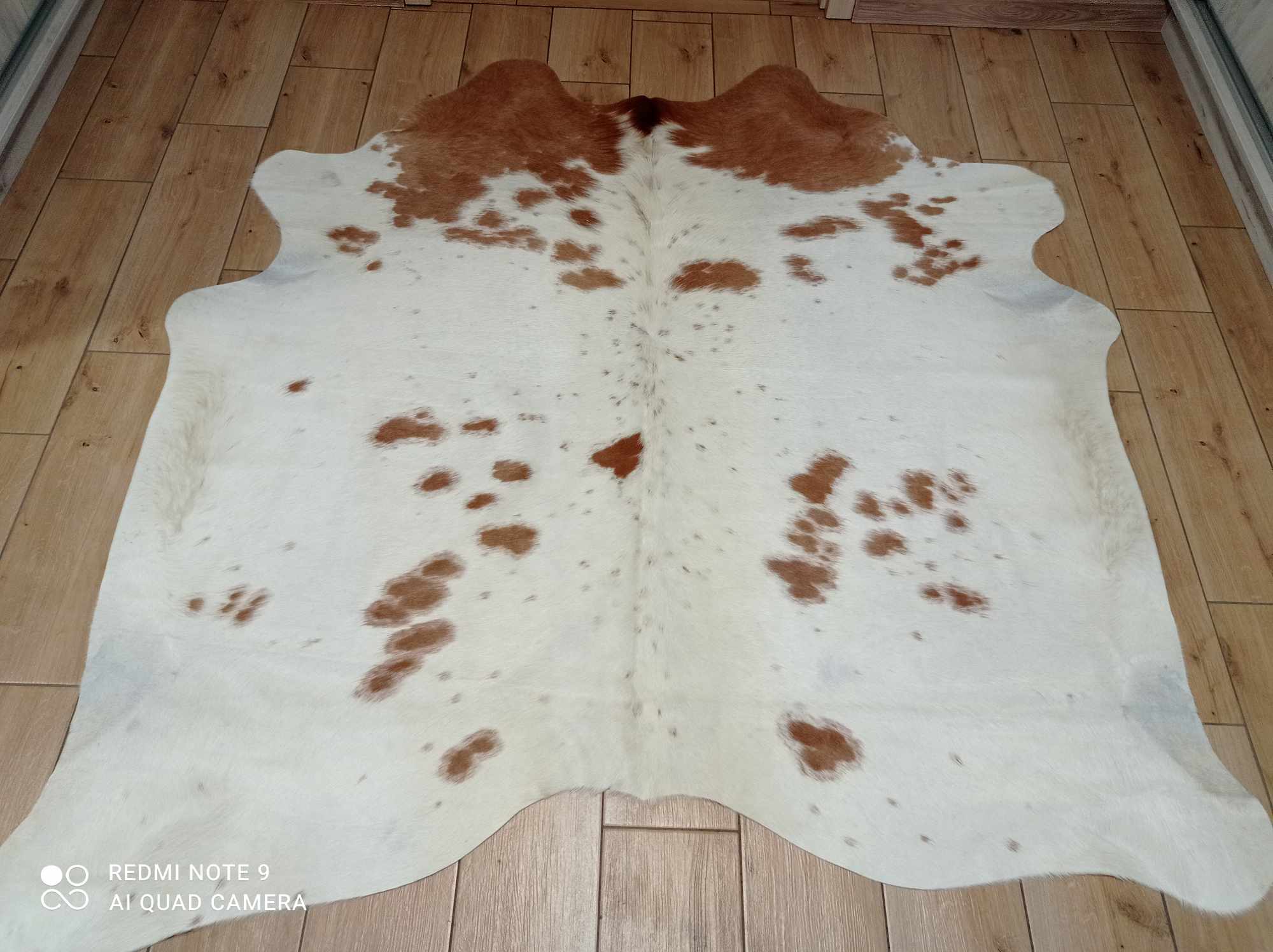 Piękna SKÓRA BYDLĘCA łaciata kremowo-brązowa Krowa naturalna