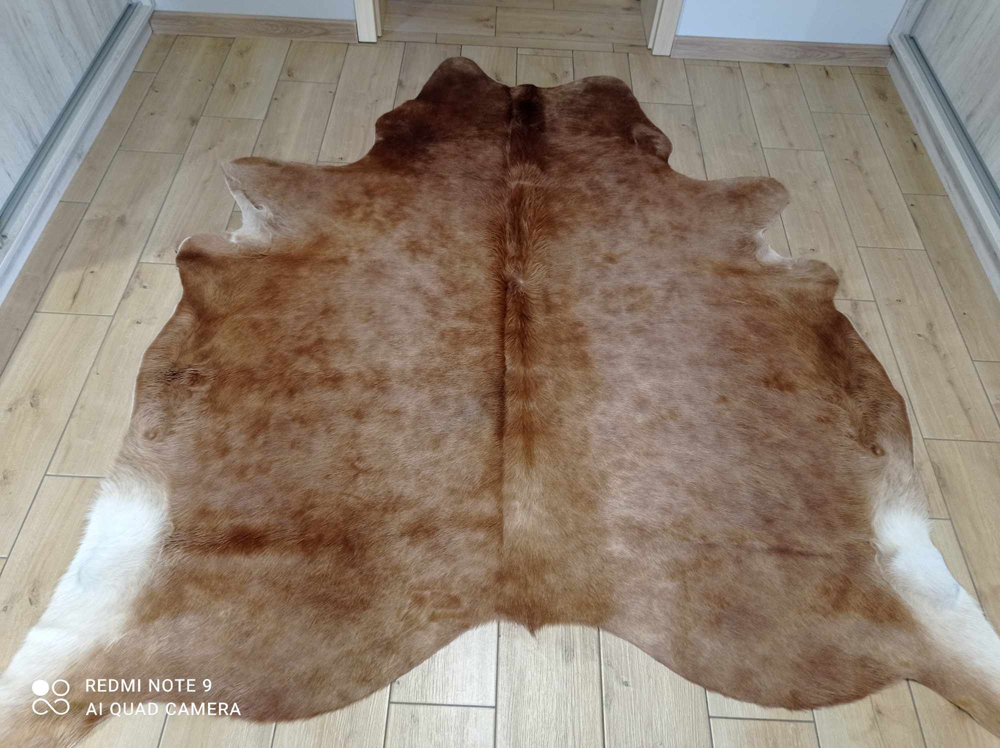 Piękna SKÓRA BYDLĘCA brązowa z dłuższym włosem skóra z krowy
