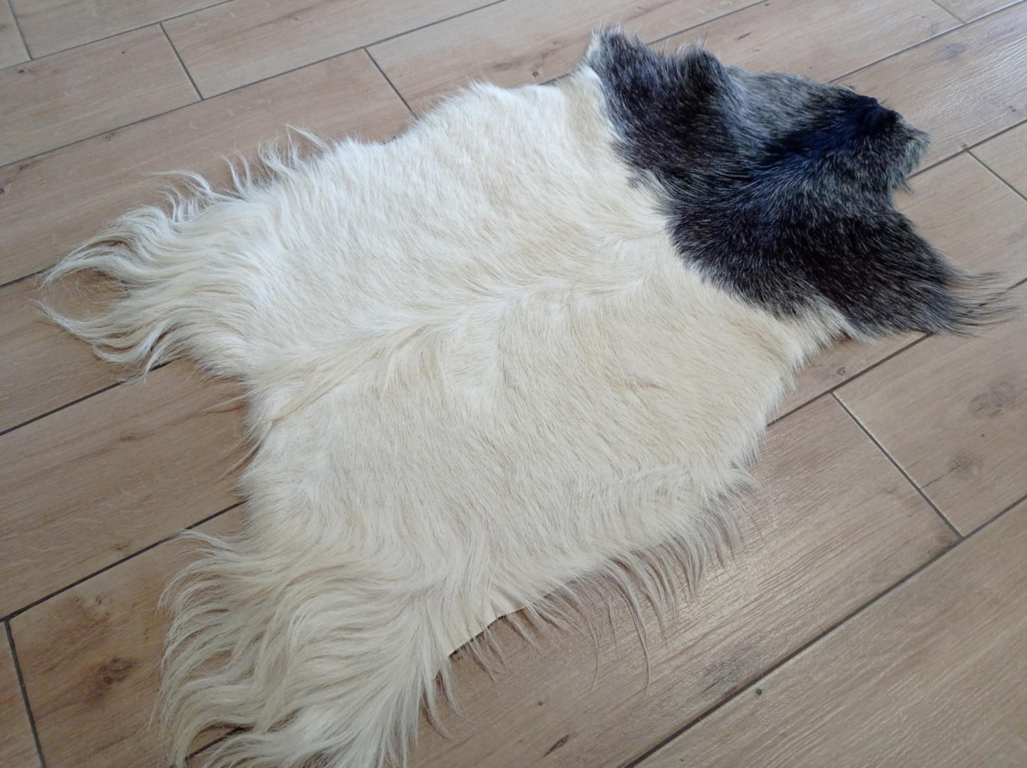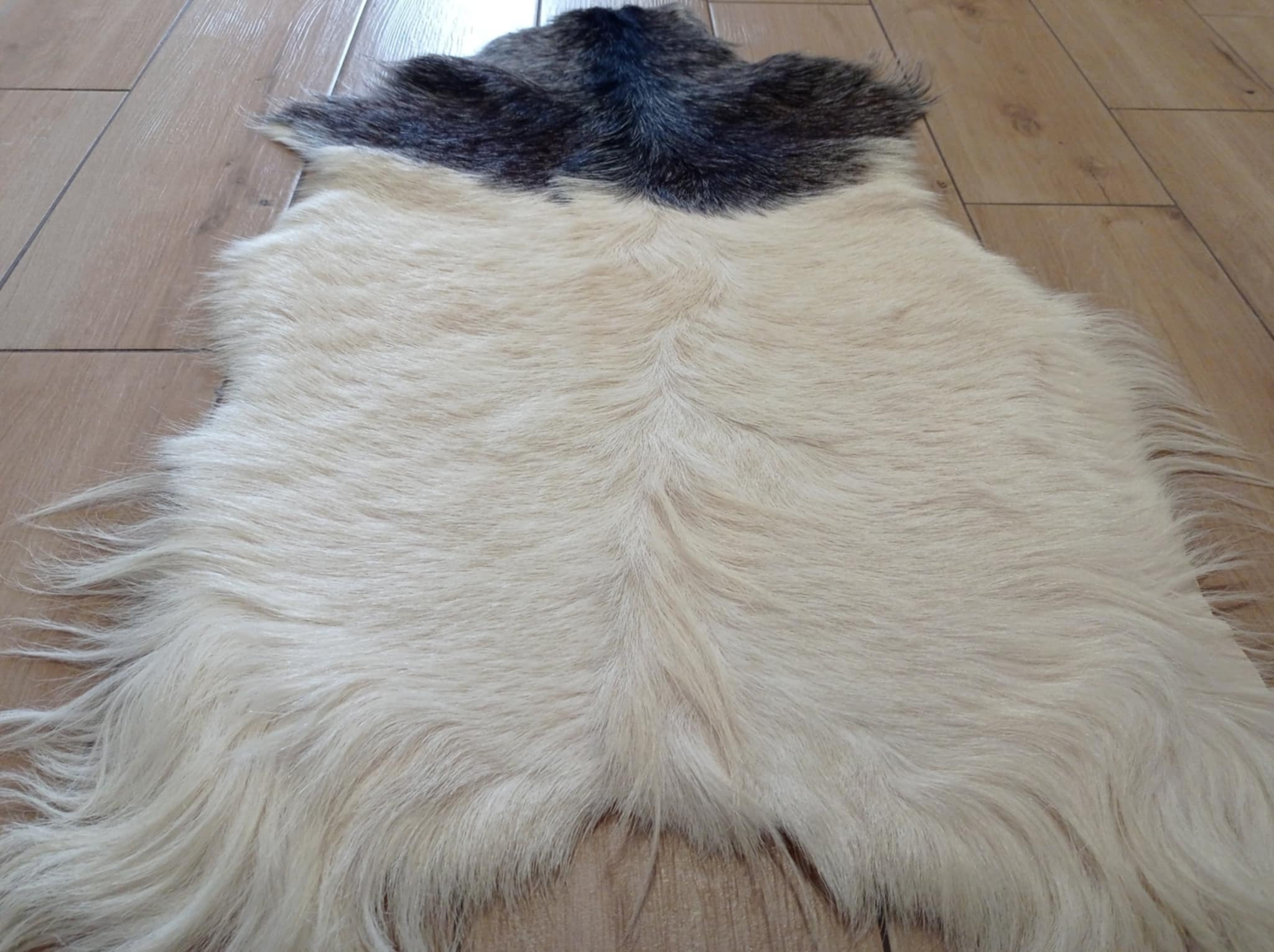 Skóra z kozy kremowo-szara z długim włosem skóra naturalna